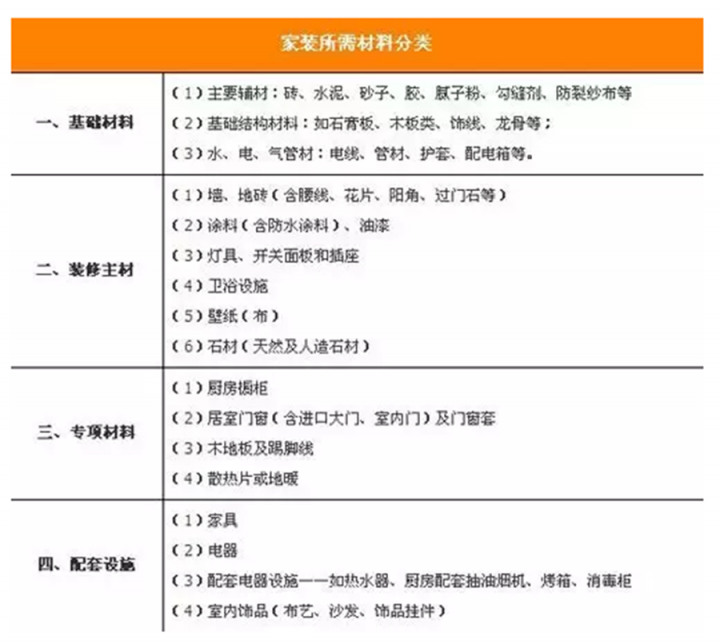 清楚自家的裝修方式,再按照裝修清單購買才是明智業(yè)主的做法。
