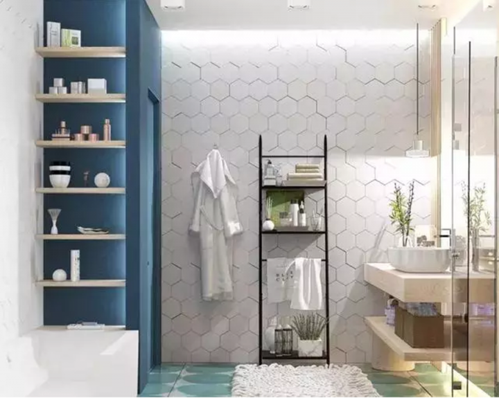 出于干濕分離考慮,淋浴區(qū)與其他區(qū)域之間會用玻璃門或浴簾阻隔,為了方便沐浴,淋浴區(qū)內(nèi)部可以安裝擺放洗浴用品的掛鉤或者置物架。