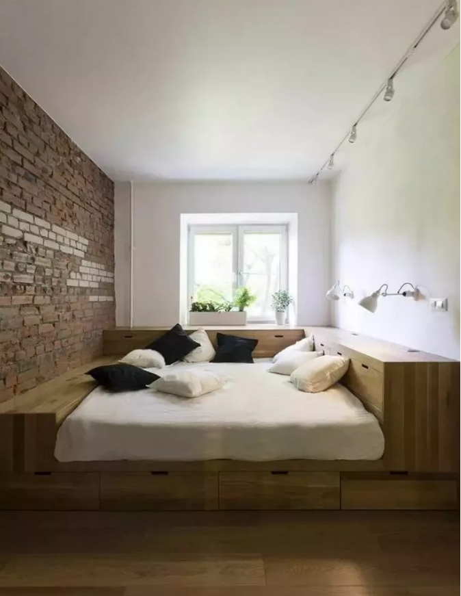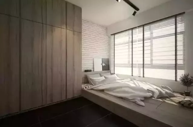 也有一些屋主,喜歡的是榻榻米地臺的顏值,所以會選擇舍棄榻榻米地臺的儲物能力,把地臺做矮、做大一些,再擺上一張床,更有時尚感。