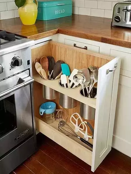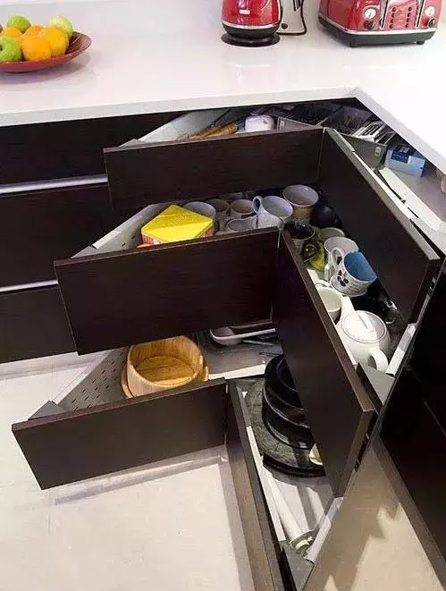 看過了國外的櫥柜,讓我這個平時不下廚的懶人竟也目瞪口呆。櫥柜中大小不一的分格、拉籃,讓不同種類的烹飪工具,碗筷和食品各就各位,一目了然。在這里呢,小編可不是說外國的月亮就比較圓,這其中可能還涉及到飲食習(xí)慣等等,撇去這些不講,只是覺得他們這種收納的方式是非常厲害的。如果你們家正在裝修櫥柜或是以后想擁有一個整潔的廚房,不妨可以借鑒一下啊。