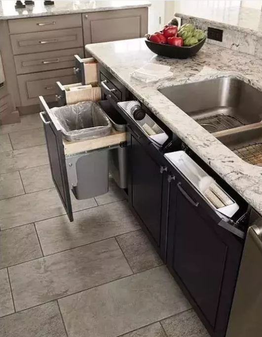 廚房的垃圾基本是每日的都清的,但一些喜歡整潔大方的人,也會考慮把垃圾桶收納到櫥柜里面。