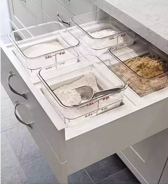 大米或一些經(jīng)常烹飪用到的雜糧干貨,也可以單獨(dú)留出拉籃的位置,這樣用起來也比較方便,不會被塑料袋裝著時間久了被遺忘而過了保質(zhì)期。