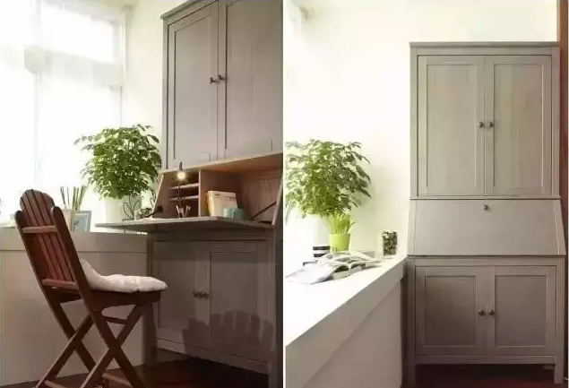小書柜+工作臺+座椅,陽臺變成書房,家里的空間明顯夠用了。