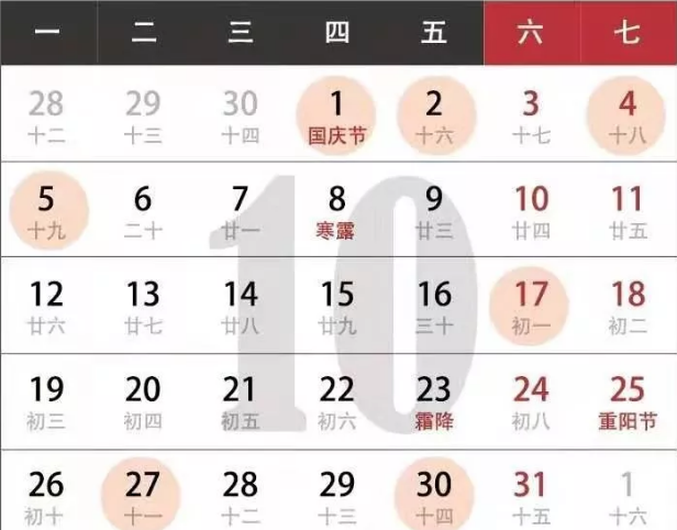 4.公歷2020年10月5日,農(nóng)歷二零二零年八月十九,星期一;