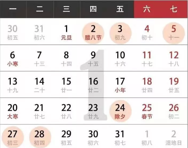 3.公歷2020年1月5日,農(nóng)歷二零一九年十二月十一,星期日;