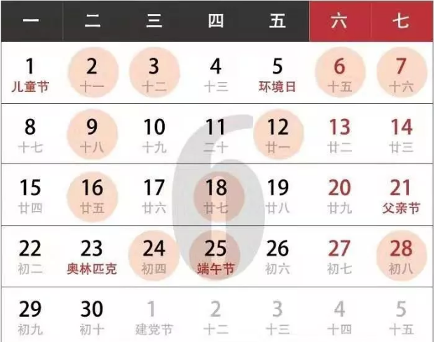 5.公歷2020年6月9日,農(nóng)歷二零二零年四月十八,星期四;