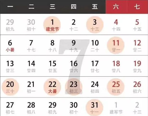 7.公歷2020年7月25日,農(nóng)歷二零二零年六月初五,星期六;