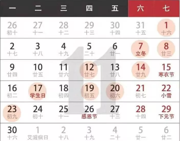 6.公歷2020年11月17日,農(nóng)歷二零二零年十月初三,星期二;