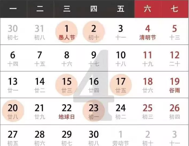 2.公歷2020年4月2日,農(nóng)歷二零二零年三月初十,星期四;