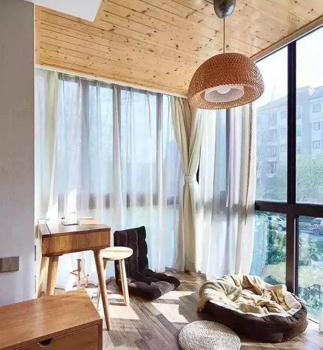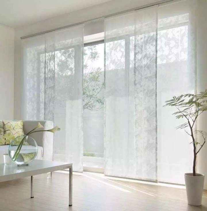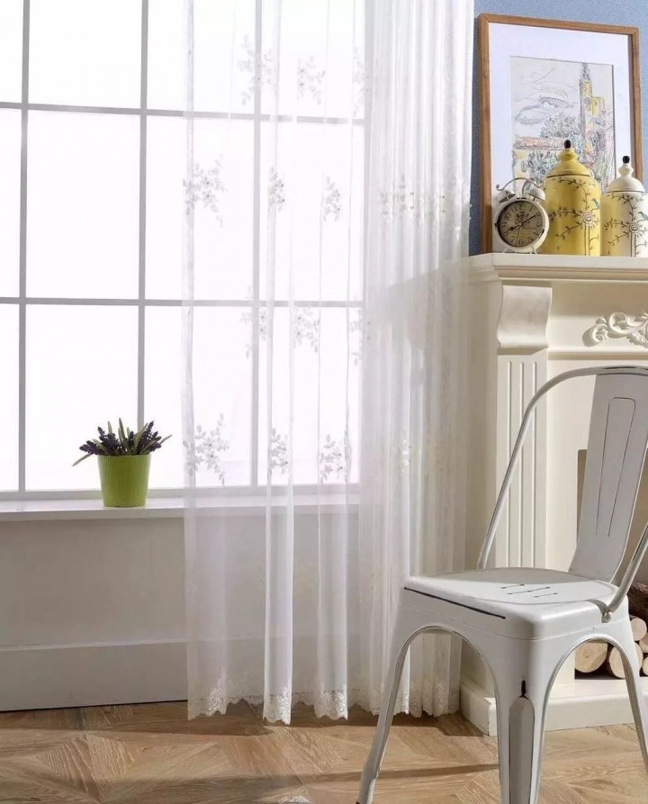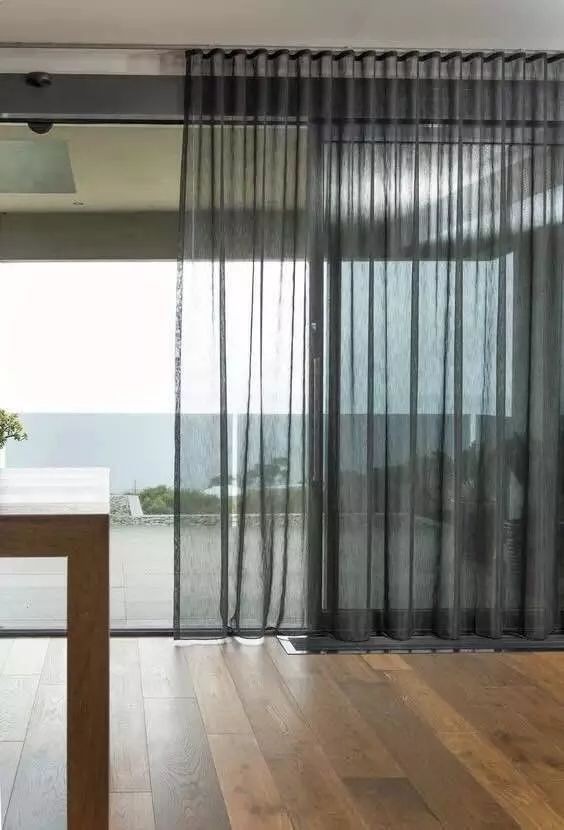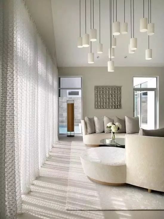 飄逸的淺色調(diào)輕紗儀態(tài)萬方,重量小也易于清洗打理;如果要凸顯漂浮感,簾布就以不貼地面為宜。