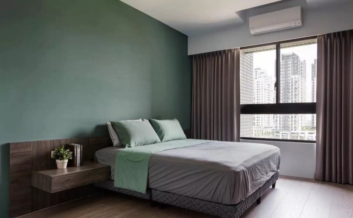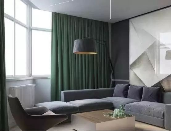 當(dāng)墻壁是比較蒼白的裸灰,家具又是極簡(jiǎn)風(fēng)格,那么窗簾不妨選擇濃墨重彩的墨綠絲絨,稍許的亮色,讓整個(gè)房間都鮮活起來!