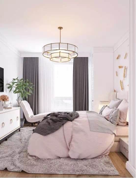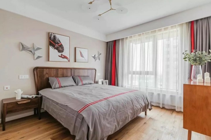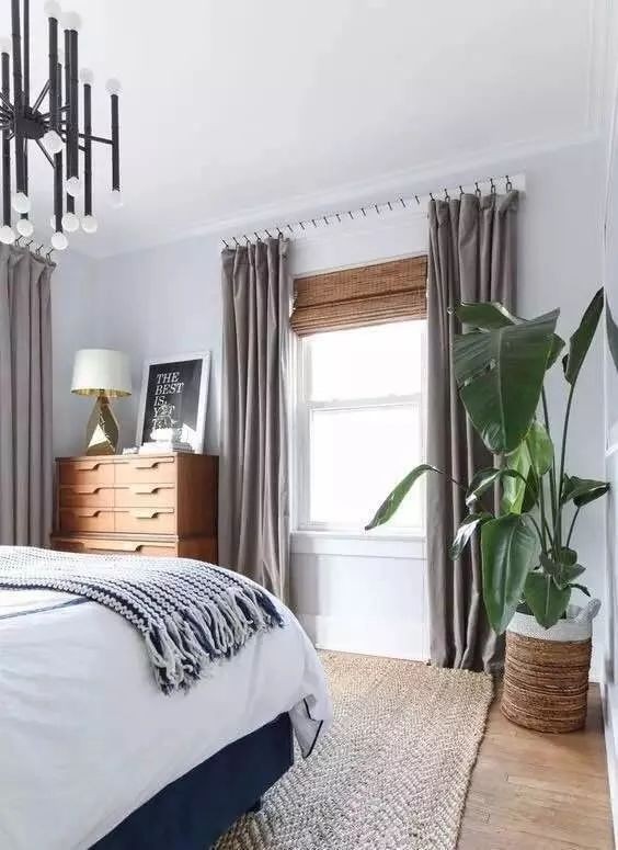 臥室的窗簾更注重功能性,要充分避光以保證睡眠。臥室內(nèi)窗簾最好選擇落地款,以免窗簾過短而漏光。