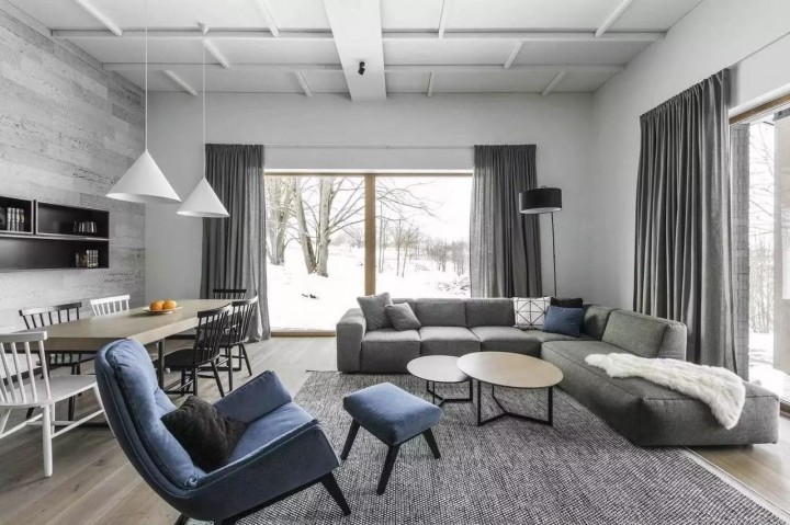 如果愛在客廳看電視電影,更多享受溫暖的家庭氛圍,那就應(yīng)當(dāng)多考慮遮光度高的深色調(diào)。除了增添溫馨和私密,它們?cè)谇锒具€能為隔熱防寒出一份力。