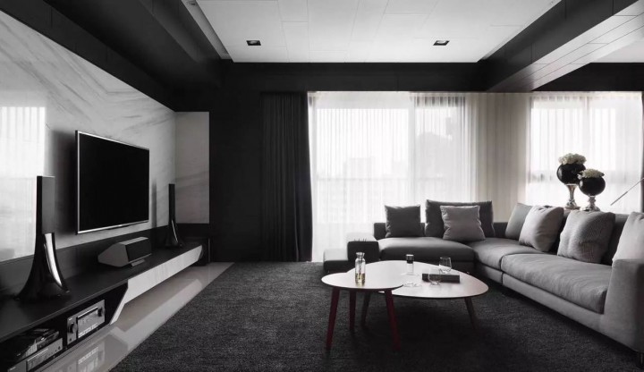 黑白的配色最簡(jiǎn)單也最經(jīng)典,整個(gè)空間優(yōu)雅而知性,黑色的大量運(yùn)用在于平衡空間的色調(diào)。