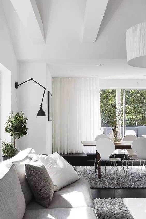 米色或者白色的凈色紗簾,是最好的推薦,百搭經(jīng)典,薄的飄逸朦朧,厚點(diǎn)兒的垂感質(zhì)感好,當(dāng)陽光投射進(jìn)來的時(shí)候,無敵光影才是最美的!