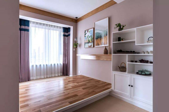 2.如果條件允許,建議把木地板架高,做成地臺(tái)。地臺(tái)下面的縫隙更大,隔音效果也會(huì)更好。同時(shí),由于遠(yuǎn)離樓板,地臺(tái)在踩、坐的時(shí)候也會(huì)感到更加溫和、柔軟。