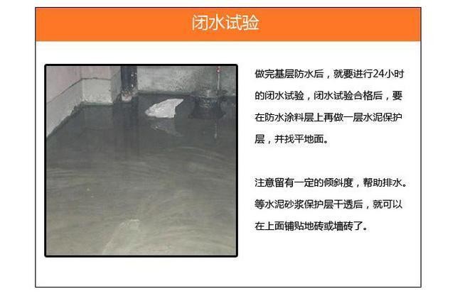2、防水試驗(yàn)要做到位,閉水試驗(yàn)的時(shí)間最好是在24~48小時(shí),水淹沒地面的高度,最少要有3cm。