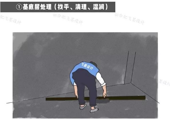 ①基層處理:墻面和地面的基層表面必須平整清潔,防水的效果才會好,如果有松動、空鼓、起沙、開裂、沙眼和空洞等現(xiàn)象,都需要重新做基層處理,可以用1:2.5的水泥砂漿找平。