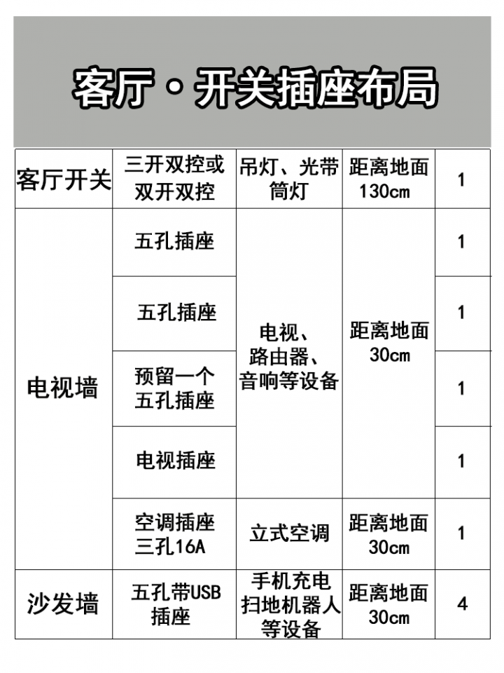 下面給大家分享一份開關插座布局攻略,家里準備裝修或正在裝修,記得收好啦!