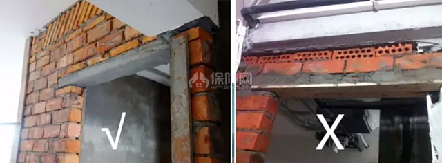 門板做門梁時(shí)間久了容易承重力不夠會(huì)變形,一定要求師傅用預(yù)制水泥板來(lái)做門梁,而且注意看門梁兩邊長(zhǎng)過(guò)門洞120mm以上,這樣的門梁才結(jié)實(shí)不開裂變形。
