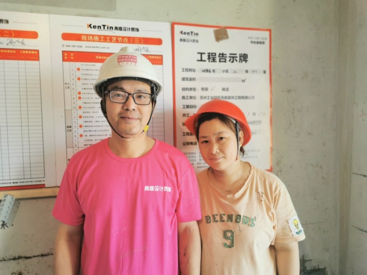 魏師傅和戴姐就是這個(gè)群體的一員,他們是青庭裝飾的瓦工。兩個(gè)人都是80后,是工地上比較少見的年輕人。魏師傅專業(yè)功底非常好,聊起材料與工藝都如數(shù)家珍。