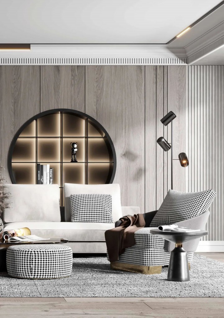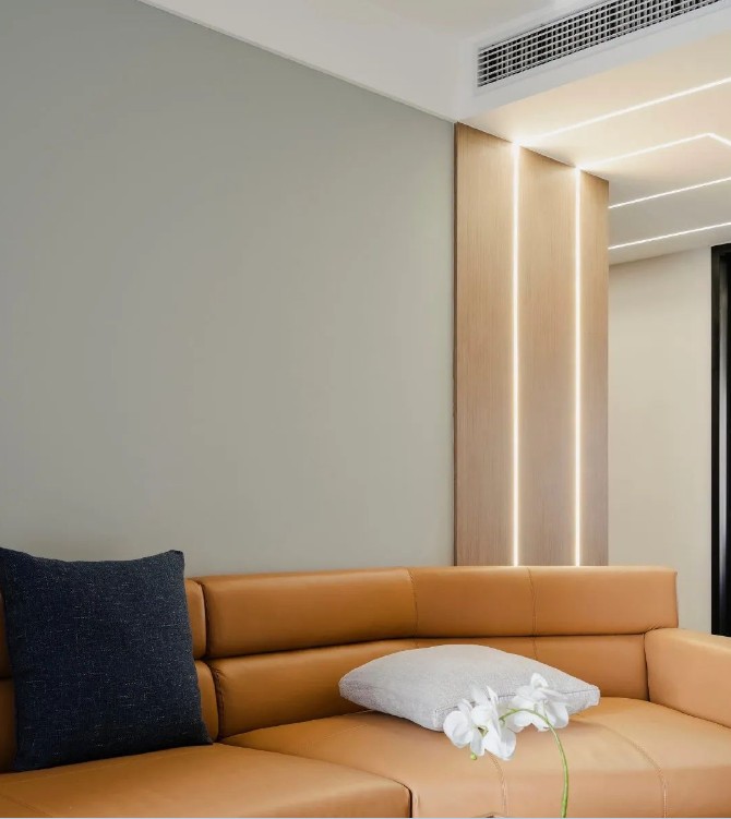 稍稍比較講究的話,可以嵌入燈帶或者線條燈進(jìn)行點綴,除了輔助照明之外,還能使得整個背景墻更上檔次。【ps:要這么做,要提前跟師傅溝通,做好預(yù)留?!?
