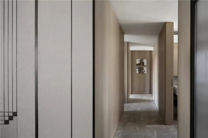 過道不想清一色的大白墻的話,可以用木飾面上面,木質(zhì)材料的質(zhì)感,可以更好營造出空間舒適感。