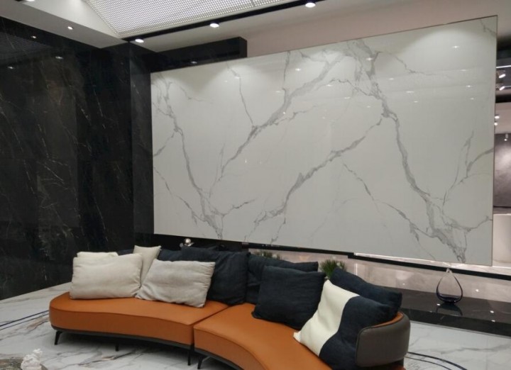 760*2550mm和1220*2600mm這種大尺寸的巖板一般用來做背景墻,縫隙小,會增加檔次。