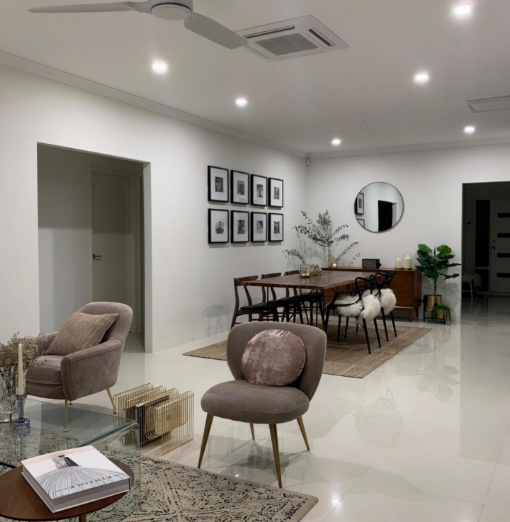 客廳和餐廳之間無隔斷的設(shè)計,在視覺上延伸了空間。