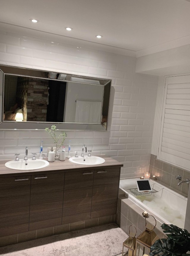 雙盆的浴室柜,更方便家人同時洗漱,旁邊是令小編羨慕不已的浴缸,想象辛苦一日后回到家里,泡澡放空自己,該是多么放松愜意的事啊~