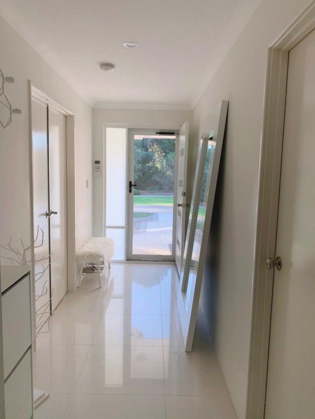 進(jìn)門處擺放了全身鏡和換鞋凳,方便進(jìn)出門換鞋和檢查儀容。