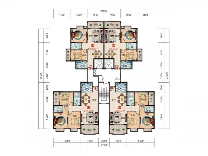一般來說中間套都是朝南的,陽光比較充足,但是有點(diǎn)空氣不流通。而扁桃一半都是南北通透,而且面積也比較大??梢赃吿滓卜譃槲魈缀蜄|套。