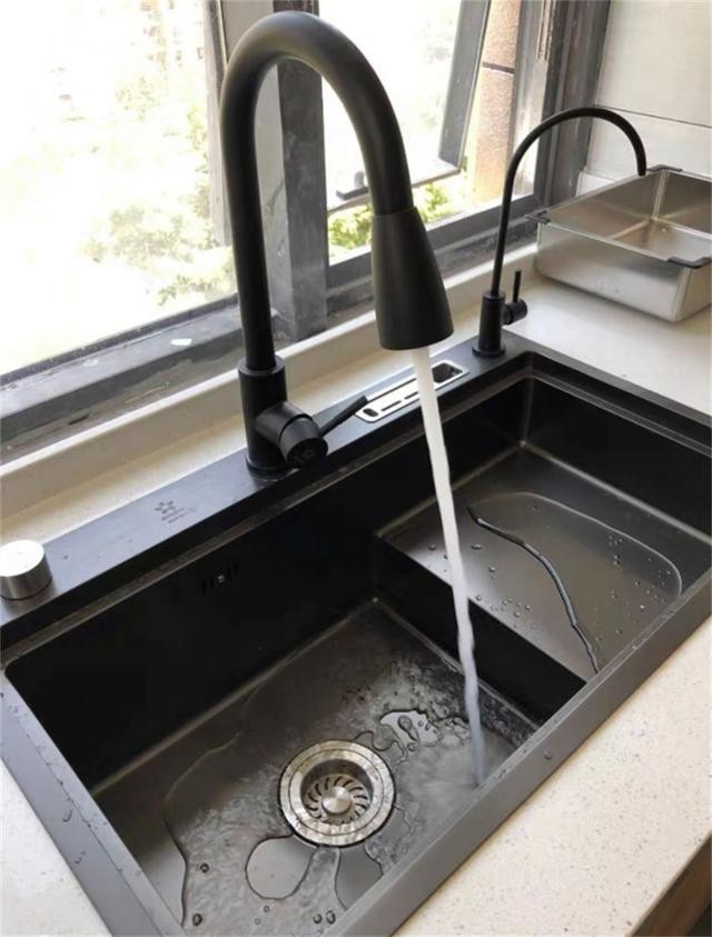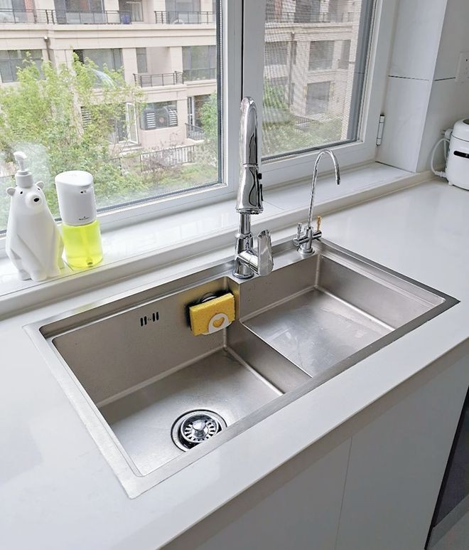 階梯式水槽看起來(lái)簡(jiǎn)單,實(shí)際上帶有很多小細(xì)節(jié),比如臺(tái)階采用<1°的微坡度引流,能避免積水;水槽要是一體沖壓成型的,減少衛(wèi)生死角;另外臺(tái)階的高度大概是水槽深度的一半,太高容易影響清洗鍋具。