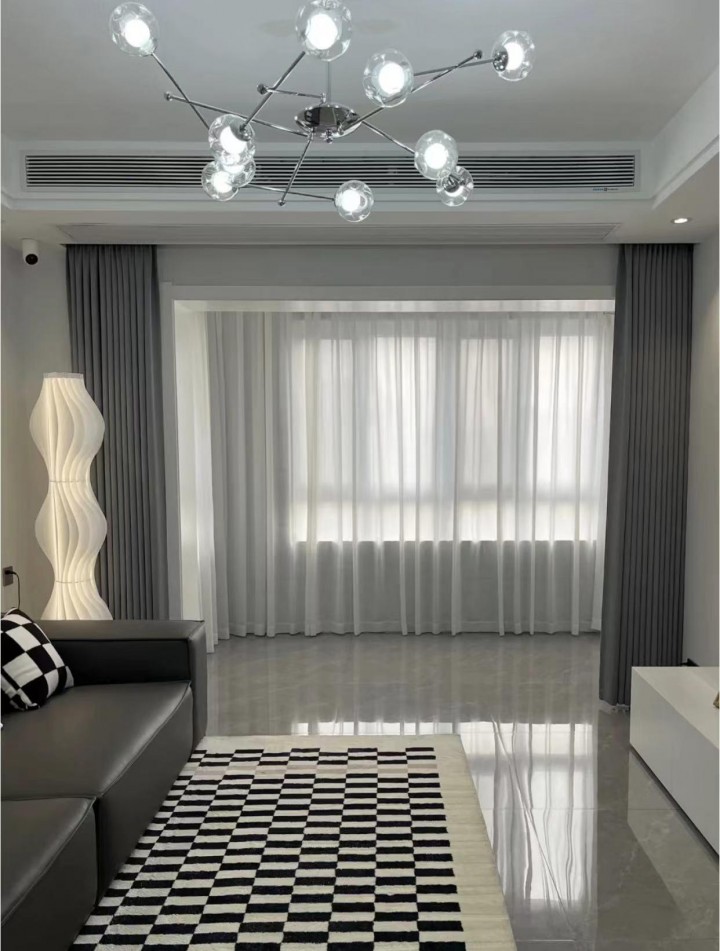 其實這種回型吊頂是最值得借鑒的,一是不會壓縮層高,二是節(jié)省成本、縮短工期,美觀度也比較高。而且還能正好將中央空調(diào)包進(jìn)去(女主家裝的是一拖一的風(fēng)管機空調(diào),造價7000左右)。