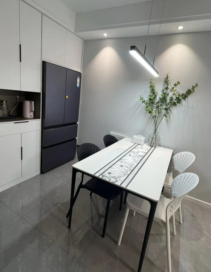 尤其是冰箱“嵌入式”設(shè)計,讓冰箱與餐邊柜融為一體,這樣的做法不僅提升了整個空間的收納能力,而且提升了觀感(美觀度),說得高大上一點,這叫“空間美學(xué)”。
