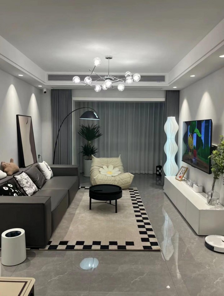 客廳選擇800×800的淺灰色瓷磚,包工包料花費19000元。在瓷磚的選擇上,有很多人覺得瓷磚越大越好,比如鋪750×1500的瓷磚。實際上入住后就會知道,對于小戶型住宅來說,如果客廳的面積不足30平方米,選擇800×800的瓷磚就可以了。