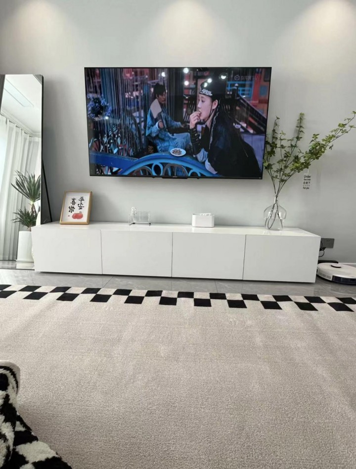 很多人說“乳膠漆電視墻”,是十年前的做法,現(xiàn)在早就過時了,流行的是“滿墻電視柜”和“巖板格柵背景墻”。