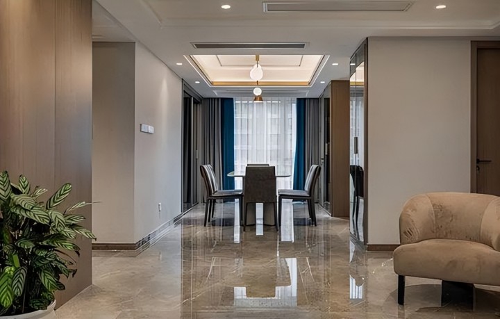 地磚通鋪顯得家里大又干凈,房間之間沒有明顯界限,空間上延伸感更強(qiáng),也符合簡約的主流審美。大規(guī)格瓷磚通鋪在室內(nèi),美觀度高,遠(yuǎn)遠(yuǎn)看去賞心悅目,視覺效果好。