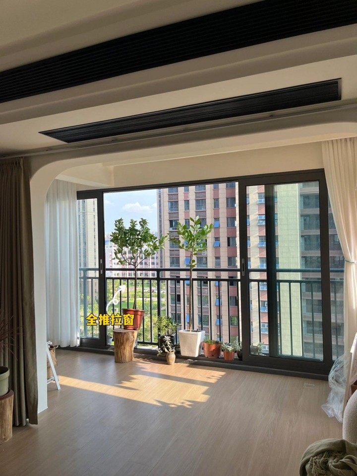 這種全推拉窗的穩(wěn)固性也不錯(cuò),在大風(fēng)天氣下,也不會(huì)出現(xiàn)預(yù)想中的晃動(dòng)問(wèn)題。建議窗框形成還是要選擇1.4厚度以上的斷橋鋁,玻璃最好是用雙層中空鋼化玻璃。