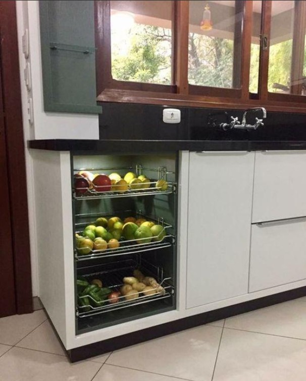 對于廚房櫥柜空出一格的好處,已經(jīng)講了很多就不贅述了??粘龅目臻g并不會浪費(fèi),我們可以用于局部拉籃的安裝,或者用于手推車或者垃圾桶擺放,實(shí)用性可是可見的。