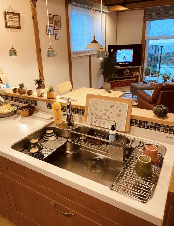 還有日式大單槽是真的很靠譜,洗鍋無壓力,水過不留痕。水槽可以搭配各種配件,比如瀝水籃、小菜板等等,滿足多種功能需求。搭配抽拉式水龍頭,360°隨意沖洗,完全沒有衛(wèi)生死角。水槽下水口很大而且是階梯式排水,不易堵塞,而且下水管位于櫥柜的側(cè)邊,而非正中央,因此下方櫥柜空間可以得到合理利用,非常便利。