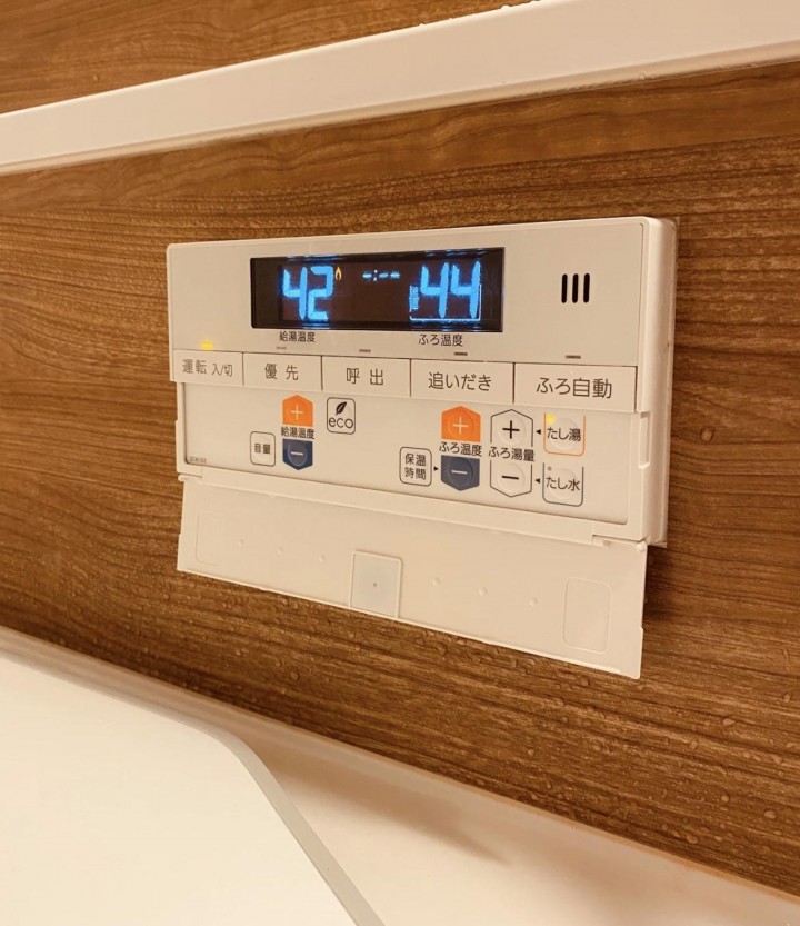 日本對泡澡很講究,這個整體浴室配有浴缸的同時還有一個硅膠保溫折疊蓋,用來蓋在浴缸上給洗澡水保溫。使用保溫蓋板后,水溫可以保持四五個小時不變。