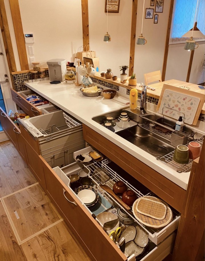 日本的廚房總是給人一種整潔干凈絲毫不凌亂的樣子,這不僅僅歸結(jié)于日本主婦善于收納,同時也和他們的廚房設(shè)計(jì)有關(guān)。