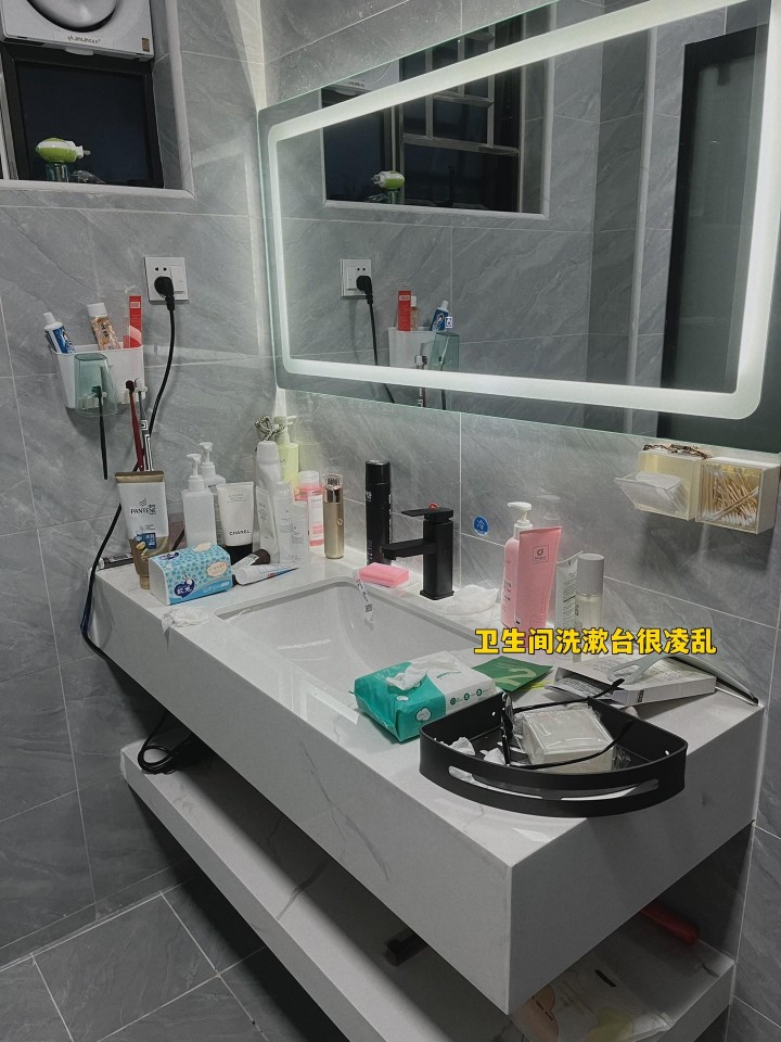 衛(wèi)生間也是一個(gè)面積小但雜物多的空間,尤其是洗漱臺(tái),如果不做好收納,就會(huì)堆滿各種清潔用品、護(hù)膚品、化妝品,不僅看起來(lái)亂,找東西也很麻煩。