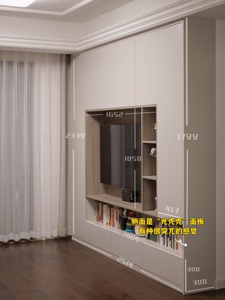 大部分朋友在客廳定制滿墻電視柜,會(huì)把設(shè)計(jì)的焦點(diǎn)集中在柜子的中心部分,而忽視了細(xì)節(jié)設(shè)計(jì)。