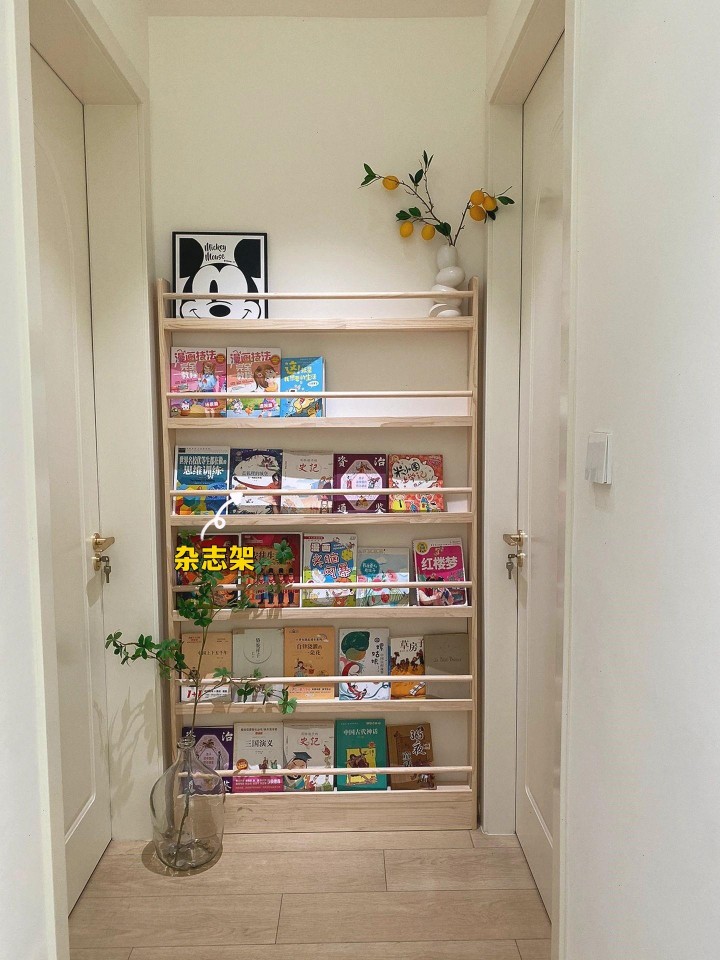 雜志柜:如果走廊空間比較小,不夠做收納柜,可以定制雜志柜,收納孩子愛(ài)看的繪本,空間看起來(lái)也會(huì)更加的豐富。