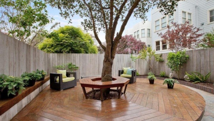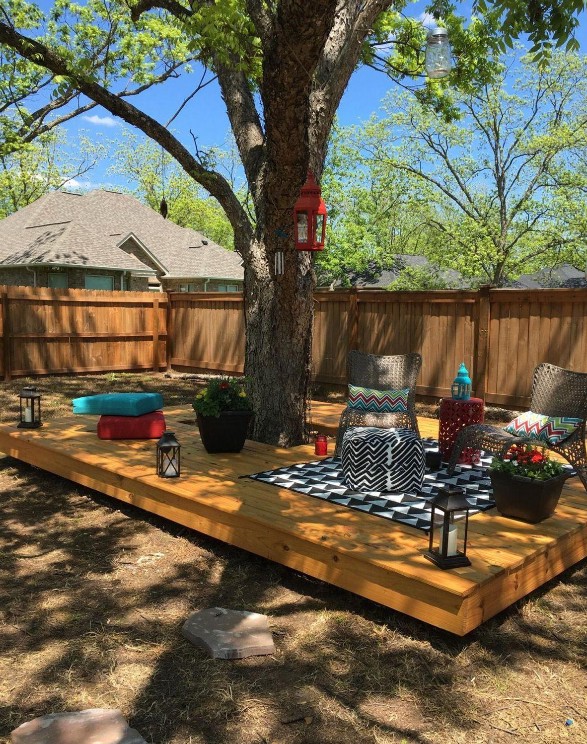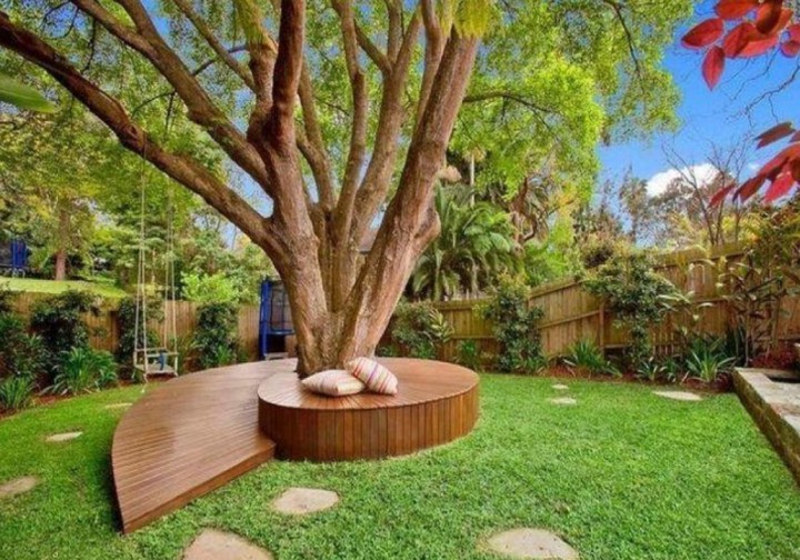 利用地臺(tái)的可調(diào)整性,或大或小,都可以滿足日常的使用需求。遇到小院子,可以如如上圖這樣,樹下作為休閑區(qū)也是很好的。結(jié)合草地一起使用,這簡(jiǎn)直不要太爽了。
