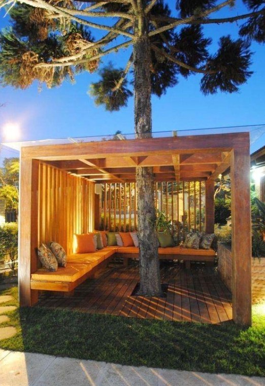 相比前面的兩種,選擇這種類型種樹還是比較少,借著有樹的地方設(shè)廊架,頂面用玻璃等封頂,抬眼便是綠意,還能適當(dāng)遮陽(yáng)有何不可。