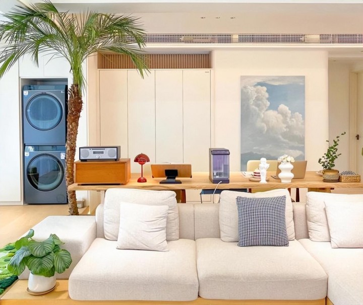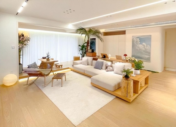 100平三居室裝修設(shè)計,OldEast和大叔現(xiàn)在的家,面積100㎡,是一套傳統(tǒng)的三室兩廳,整體基調(diào)是原木風(fēng)+白色+淺灰的搭配,整體高級又干凈。 他們在改造時砸掉一間臥室,將原本的公區(qū)變成了7.5m長的大橫廳,采光也比之前好了不少,面積已經(jīng)接近50㎡了。