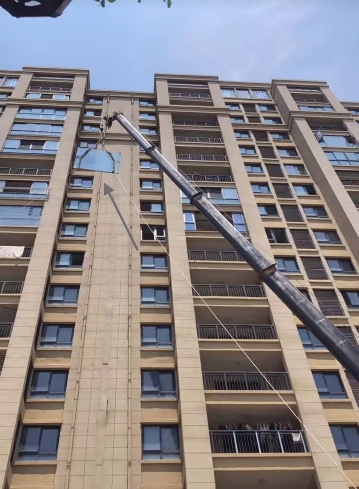 由于大玻璃落地窗無法進(jìn)入電梯和樓梯(即便是樓梯可走,也會(huì)增加碎裂的風(fēng)險(xiǎn)),所以在安裝的時(shí)候必須要使用吊車。而這個(gè)時(shí)候就會(huì)發(fā)現(xiàn),大落地窗的“安裝成本”高達(dá)兩三千元(吊車+人工)。